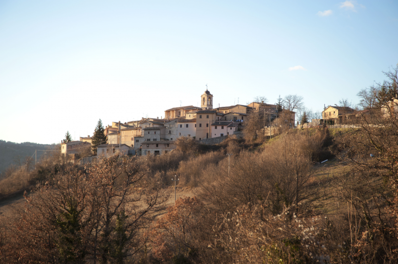 Dalla chiesa di San Salvatore l’itinerario prosegue per il borgo di Ancarano, che trae nome da Ankaria, divinità etrusco-italica protettrice dei viaggiatori e dei passi di montagna. Sulle pendici del colle che sovrasta la valle, le rovine di