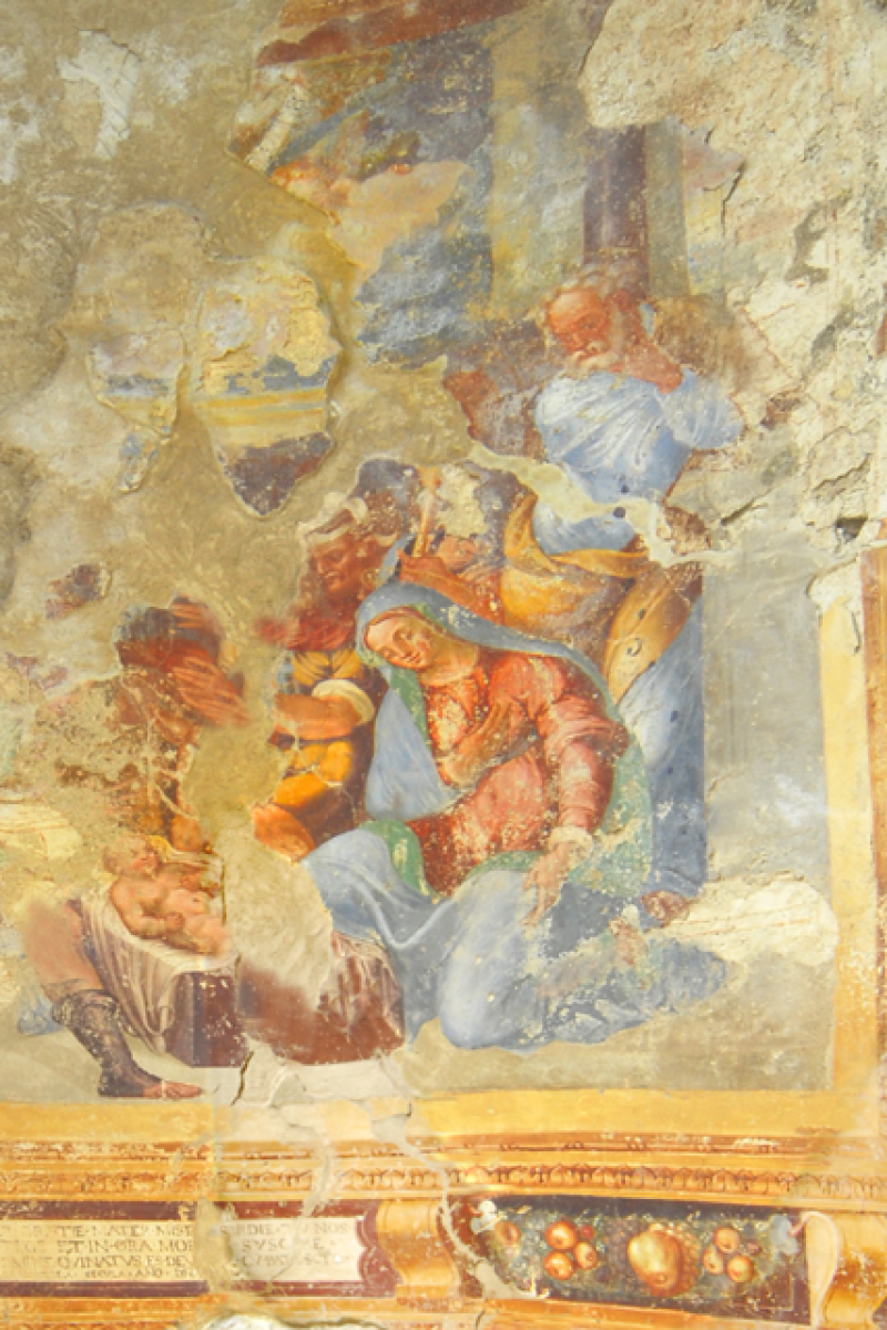 NOTE - il terremoto del 1979 l`ha praticamente rasa al suolo. Sono rimaste solo alcune pareti laterali con gli stupedi affreschi che purtroppo, solo pochi anni fa, hanno deciso di proteggere con delle lastre di plexiglas.