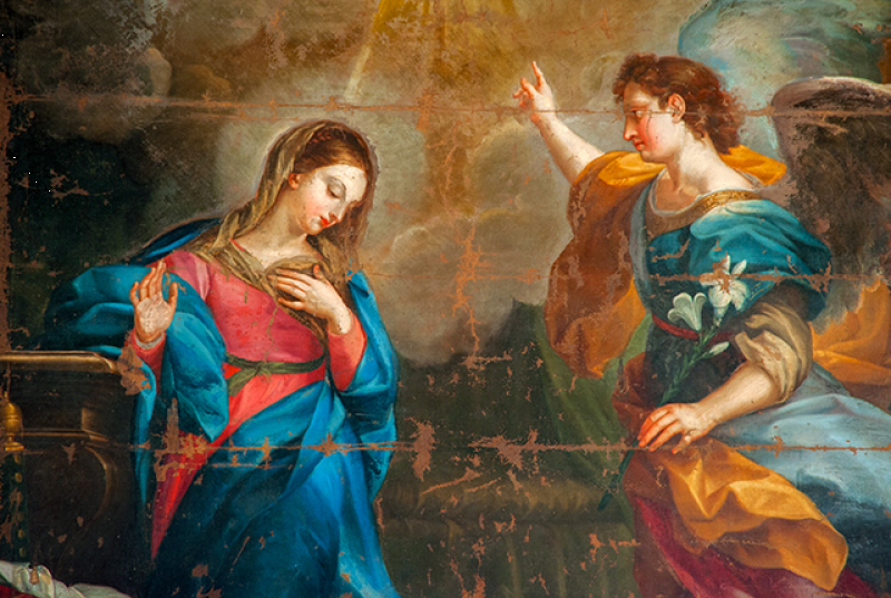 Sulla controfacciata di destra è possibile apprezzare una grande tela della Immacolata Concezione con i SS. Giovanni Battista, Giuseppe, Nicola da Bari e Anna, madre della Vergine. Murata nell’arco divisorio un’acquasantiera con una Maddalena longobarda o romanica e il vaso dei profumi.