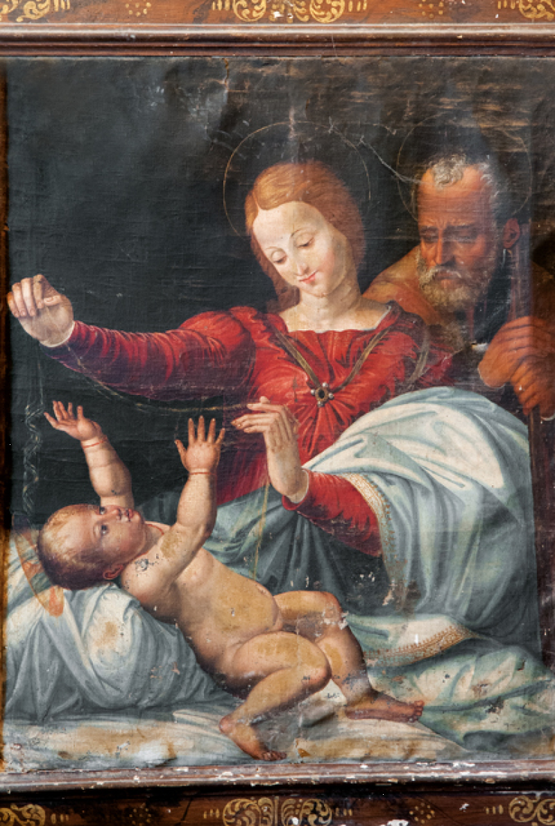 Sull’arco tra le due navate, un tabernacolo in pietra del Seicento, con fini bassorilievi, trasformato in custodia del sacro crisma. Sull’altare di fondo della navata destra è possibile ammirare un crocifisso ligneo, risalente al Quattrocento, fra Maria e Giovanni.