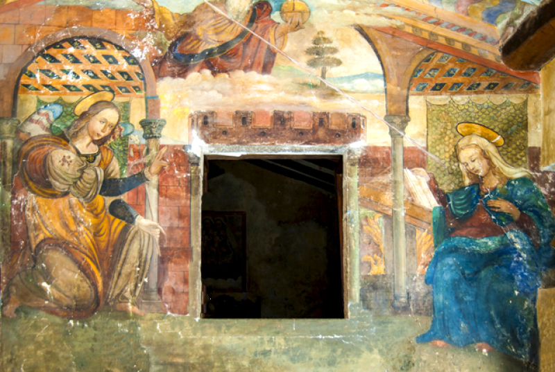 Alla destra della nicchia è raffigurata l’Annunciazione, datata 1533. A sinistra, l’arcangelo Gabriele in ginocchio reca l’annuncio. In alto, sopra la finestra, il Padre col globo in mano e, alla sua destra, lo Spirito Santo in forma di colomba dal quale si diparte un lungo raggio igneo che colpisce al cuore la Vergine. Nel terzo arco, Maria seduta allo scriptorium, in atto di profondo raccoglimento.