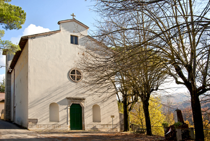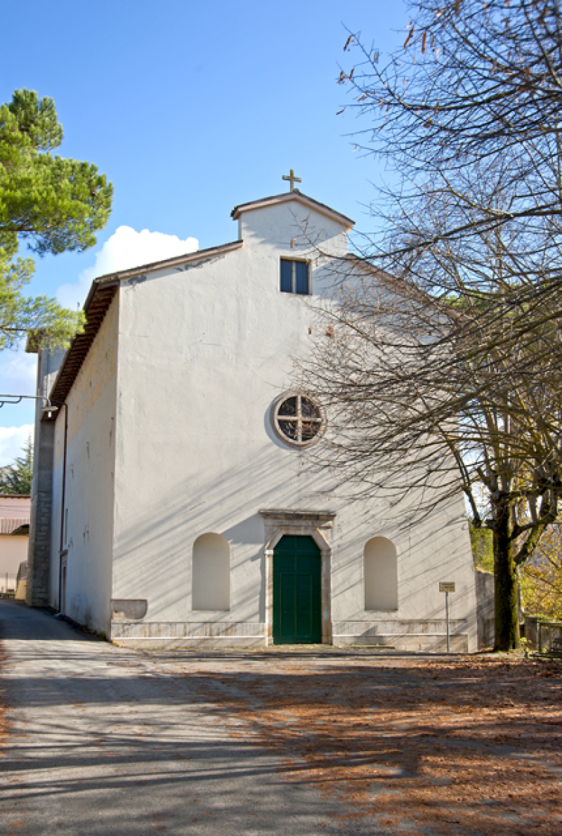 Ricostruita all`interno nel sec. XVIII, contiene due tele del sec. XVII e una Madonna col Bambino (nota anche come pala della Madonna dei Monti, dalla confraternita omonima che pagò l`altare), e una tavola degli inizi del sec. XVI proveniente dalla diruta Chiesa di San Valentino sull`altopiano di Acuti, di un pittore che per i caratteri stilistici può essere identificato con Cola dell`Amatrice. Troviamo inoltre una croce astile in lamina di rame sbalzata, ricca di immagini e di ornamenti de sec. XVI.  test