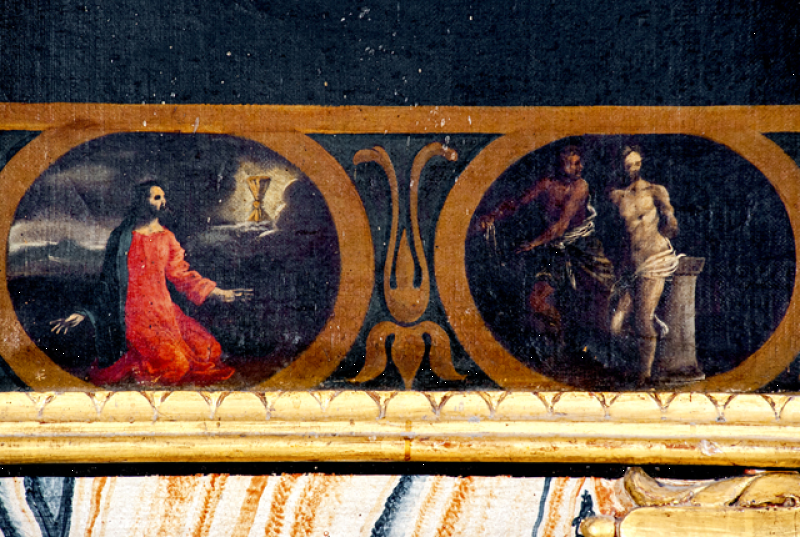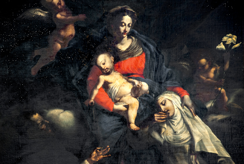 Sulla parete destra si susseguono gli altari di S. Antonio abate, della Madonna del Rosario, della Madonna con Bambino e i SS Giovanni battista e Antonio da Padova. Accanto all`ingresso, fonte battesimale con vasca del sec. XVI, sormontato da tempietto ligneo. Sulla parete grande tela con l`Estasi di S. Filippo Neri.