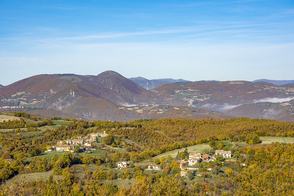 The village of Castel San Giovanni stands on a rocky crag at the far southern end of the valley, Valle di Castello.