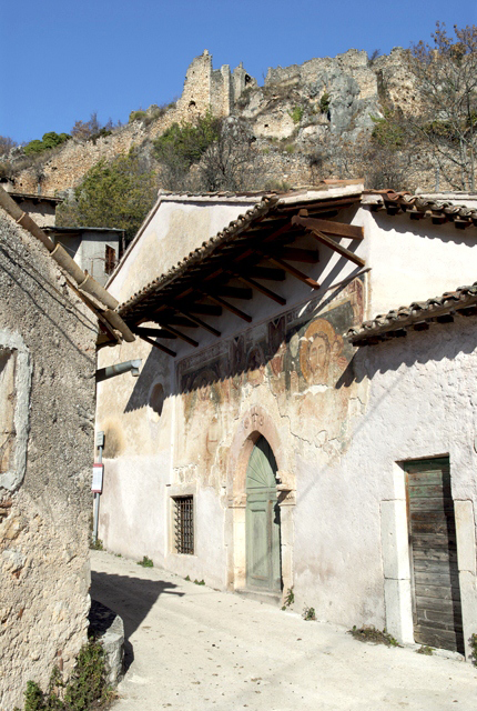Of particular interest is the Church of Sant’Antonio with its interesting facade with its prominent transenna, and a fresco of the Redeemer with his hand outstretched in blessing among angels, two prophets on either side of the Agnus Dei and Saint Christopher, dating back to the beginning of the 15th century. Below is a layer of even older frescoes.