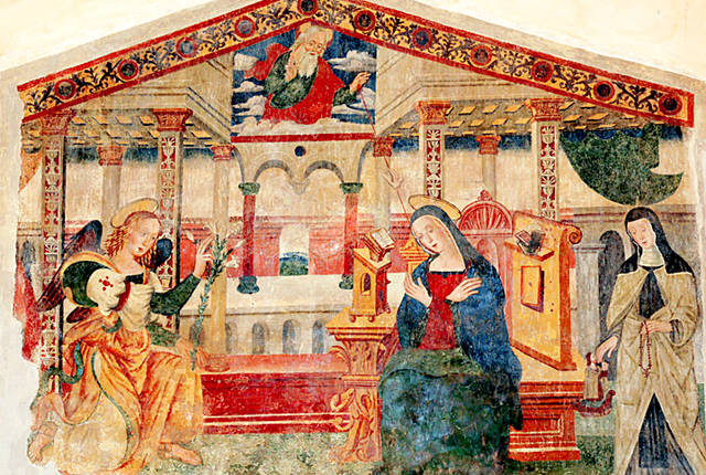 The wall of the façade and the interior were almost entirely frescoed in the 16th century by local masters. The saints depicted (St. Giovenale, St. Rita), the popular character of the frescoes and the presence of the names of the commissioning parties allow this decoration to retain the significance of this votive feat in which numerous families of the small community were involved. It was discovered starting in 1911 and handed down to us almost in its entirety.