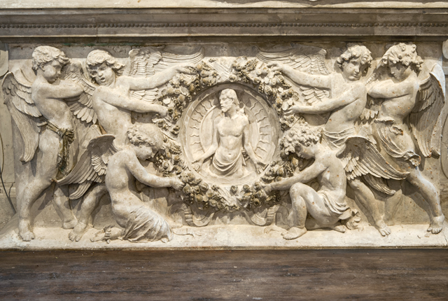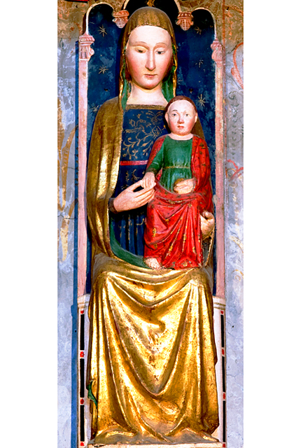 In the 17th century, the interior was enriched by altars and canvases. On the high altar, is a large temple-shaped tabernacle held up by sphinxes similar to that of the collegiate church of Santa Maria in Cascia, work of Francesco Piergentili. Madonna with child, wood polychrome statue. Rich sacristy furnishings, including the reliquary of St. Giovenale (15th century) in gold-plated copper.