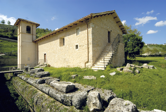 Chiavano, the characteristic, medieval castle, which gives the area its name, dominates from the summit of a rounded hill at the head of the valley at an altitude of 1,128 metres. At its feet, the flat valley bottom opens out in a southerly direction bordered by steep slopes up to a kilometre and a half apart. Along the strips connecting the flat land to the high ground are Villa San Silvestro and Buda on one side, Coronella and Trognano on the other. The first sensation that strikes the traveller, once again, is that of a beautiful location which works for both nature and man. Livening up and defining the landscape, environment, nature and history of the Chiavano Plateau even further, are the imposing remains from the 3rd century B.C. of a Roman temple at Villa San Silvestro right beside the village where the long plain begins to stretch out. These remains underline the importance in terms of religion and economics of the ancient location. To enjoy a complete view of the entire plateau, go to the town of Pianezza, in the municipality of Leonessa.