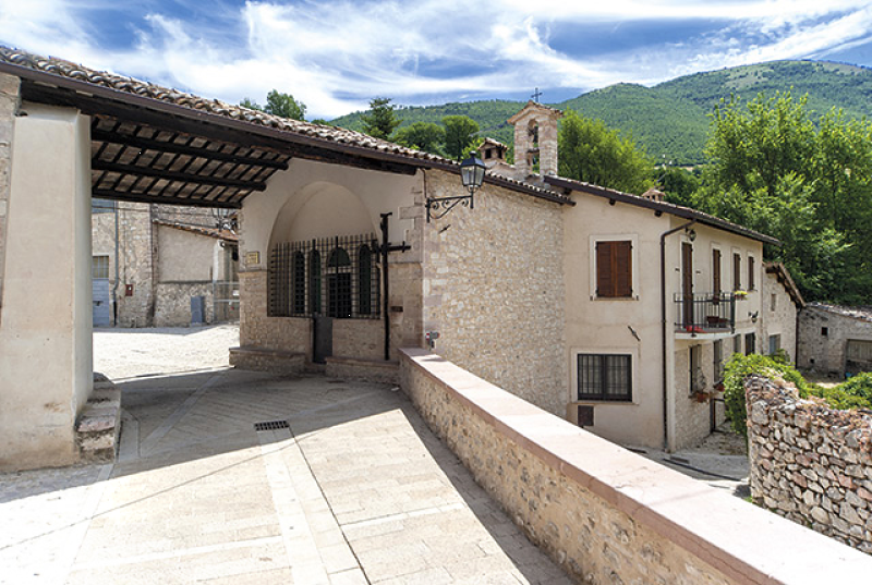 Percorrendo la strada montana che anticamente collegava Vallo di Nera e la Valnerina con Spoleto ed il resto dell’Umbria, si può osservare l’antica struttura di questo territorio fatta di architetture vegetali, come le splendide querce ultracentenarie lungo il percorso, ed umane, come i piccoli borghi, le pievi solitarie e le edicole votive.