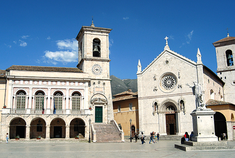 All’interno della cerchia muraria il fulcro della vita urbana è da sempre l’attuale piazza San Benedetto, dove le linee armoniose dei principali edifici civili, il Palazzo Comunale e la rocca detta la Castellina, e religiosi, la Basilica di San Benedetto e la Cattedrale di Santa Maria Argentea, rappresentano un angolo di storia italiana rimasto miracolosamente intatto nei secoli.