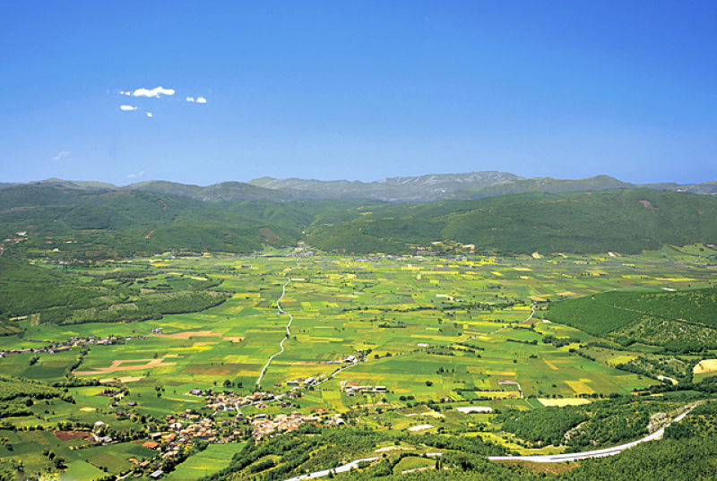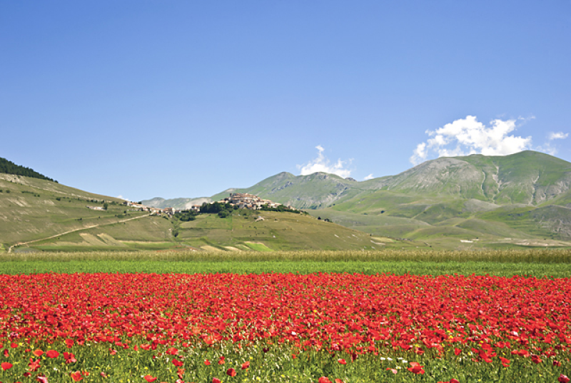 La bellezza e l’ordine della città di Norcia, in Valnerina, si specchiano nel territorio circostante, dove le forme geometriche dei campi fortificati da siepi e da querce sono punteggiati da un mosaico di insediamenti, un tempo distinti in Castelli, centri fortificati, e Ville, insediamenti aperti, uniti fra loro da antiche strade e sentieri. Oggi queste strade offrono divertenti occasioni per passeggiate di scoperta e di relax in pianura e, salendo in quota, in montagna fino ad arrivare alla Forca di Ancarano o sull’altopiano di Castelluccio, che per la sua struggente bellezza fu equiparato al Tibet dal grande etnografo Fosco Maraini.
