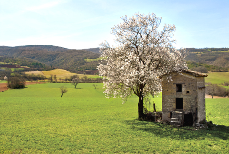 Raggiunta la sp 476, svoltare a sinistra in direzione Cerreto-Visso, dopo ca. 500 m svoltare a destra per Case Sparse e Castelvecchio.