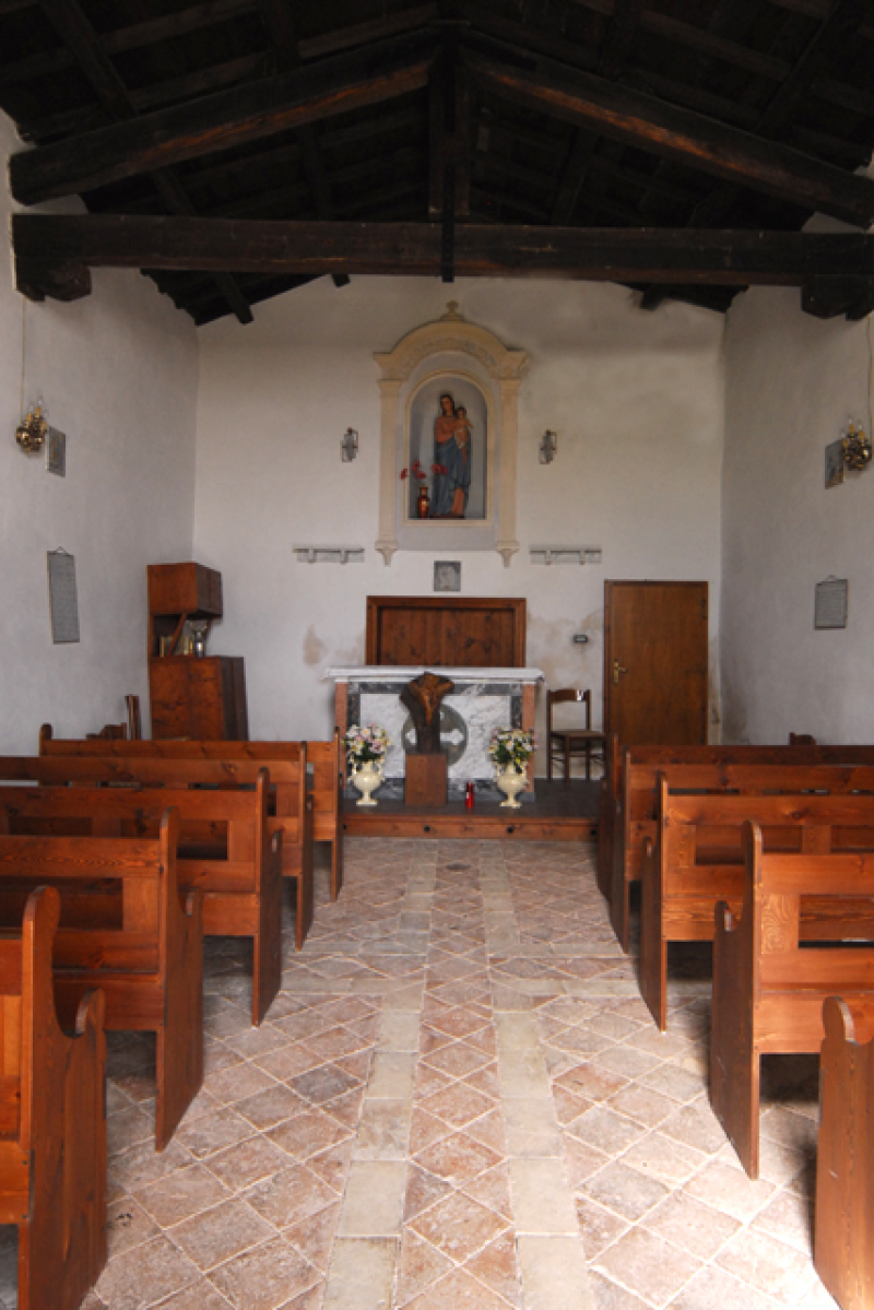 I luoghi meno battuti ed i sentieri più ombrosi, proprio come questo, ricompensano sempre il viandante ed il camminatore con la gioia della scoperta della Bellezza. Dal bar di Ruscio, lungo la ss 471 si prende verso Leonessa. Dopo ca. 50 m s’imbocca la via sulla destra, all’inizio in salita con forte pendenza, ma che dopo ca. 500 m continua in piano. Superato il casale diruto, si prosegue dritto, mantenendosi a sinistra e, dopo ca. 1 km si sbuca su di una curva, dove si procede tenendo la destra. Giunti ad un quadrivio si prosegue dritto verso Villa Cesi. Oltrepassato il casale, dopo ca. 400 m al bivio si gira a destra, seguendo il segnale di divieto d’accesso. Si cammina per ca. 700 m senza mai deviare. Guadato il fosso, si prosegue in salita, una volta raggiunta l’ampia sterrata si gira a destra e si raggiunge dopo poco la Chiesa della Madonna delle Grazie, sec. XVI. Dopo la sosta, si ritorna difronte alla pensilina informativa, si prende l’ampia strada sulla destra, che procede in discesa. All’altezza di un cancello in ferro verde, sulla sinistra, si prende la deviazione sulla destra. Si prosegue fino a raggiungere la strada asfaltata e si gira a destra in salita. In prossimità di un capannone, s’imbocca il sentiero in discesa alla sua sinistra. Guadato il fosso, si prosegue prima lungo il letto di ciottoli e poi su sterrata. Risalendo s’attraversano 2 passi, chiusi da un cancello in filo spinato, ricordandosi sempre di chiuderli. Dopo l’ultimo cancello si gira a sinistra, ritornando al punto di partenza.