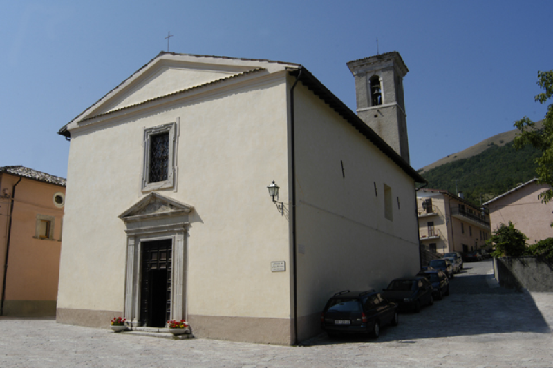 Nella parte alta dell’antico castello di Poggiodomo, la trecentesca Chiesa di San Pietro, sottoposta a vari rifacimenti e restaurata nel 1550, riccamente affrescata. Sulle vele: gli Evangelisti; sulle pareti: Maria Maddalena, la Vergine, San Pietro, San Giovanni Evangelista (inizi ‘700); nella navata, i SS. Bartolomeo, Antonio Abate, Madonna di Loreto, Marco, Antonio da Padova (inizi ‘600); sui pilastri, antico ritratto di Santa Rita da Cascia, San Gregorio Magno (1528); sul sottarco: Trinità, Deposizione, Resurrezione, SS. Pietro e Paolo; San Cristoforo in proporzioni gigantesche. Sul pilastro d’ingresso, San Sebastiano protettore dalla peste.