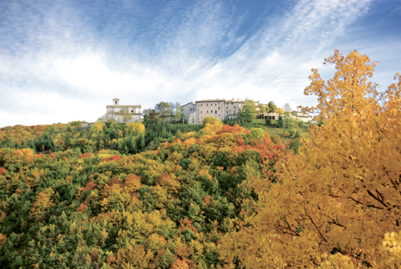 Da Usigni l’itinerario prosegue per Poggiodomo dove, nell’antica cinta muraria del castello, nel 1635 fu eretta la Chiesa di San Carlo Borromeo, a navata unica con altari barocchi del ‘600-‘700 donati dalle famiglie del luogo. Sulle tele che ornano gli altari: Natività, Visitazione, Tela del Rosario, l’incontro della Maddalena col Risorto, San Francesco riceve le stimmate, Anime purganti. Ai lati dell’altar maggiore: statue lignee dei SS. Macario, anacoreta e Rocco protettore dalla peste.