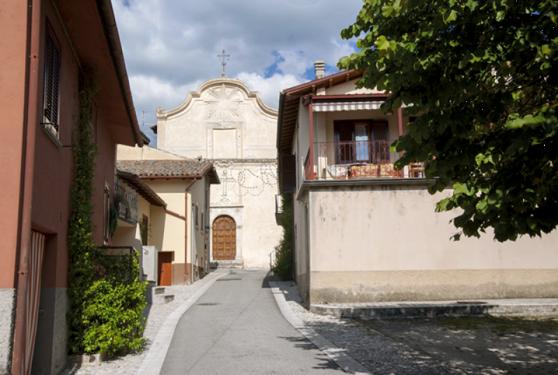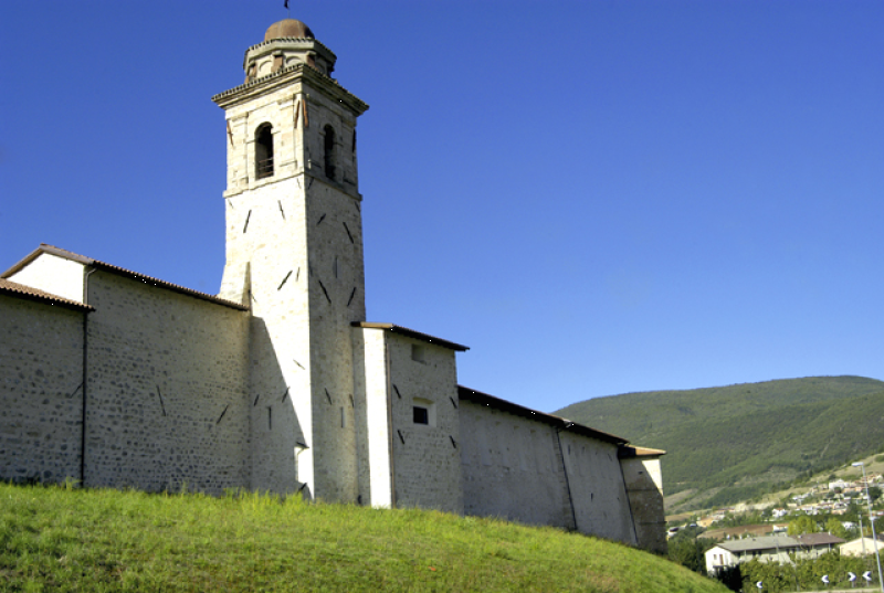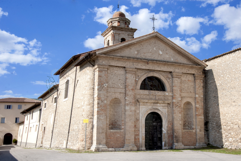 Sulla facciata gotica della Chiesa di Sant`Agostino, si apre il bel portale ogivale a fasci di colonnine; nella lunetta, affresco con Madonna e santi (1388). Il rifacimento barocco dell’interno del tempio ha risparmiato alcuni degli antichi affreschi, tra i quali: sulla parete destra, Madonna con Bambino (sec. XIV); Madonna coi SS. Antonio e Claudio di Giovanni Battista da Norcia (1497); Madonna coi SS. Caterina, Antonio e Amico, protettore dei boscaioli, di Gaspare Angelucci di Mevale (1541). Sull’altar maggiore, Crocifisso ligneo del ‘500. Vanto della chiesa, la maestosa cantoria secentesca in noce.
