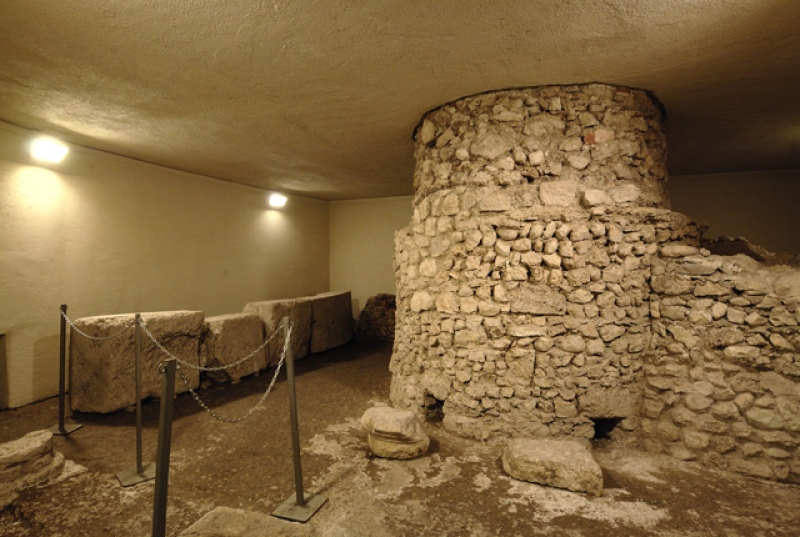 Di rimpetto, addossato alla Porta Ascolana, il Criptoportico romano parte del forum (II metà del sec. I a.C.).