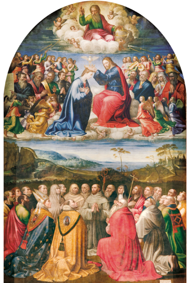 All’interno, a navata unica, è custodita la splendida pala d’altare di Jacopo Siculo che raffigura l’Incoronazione della Vergine (1539-1541).