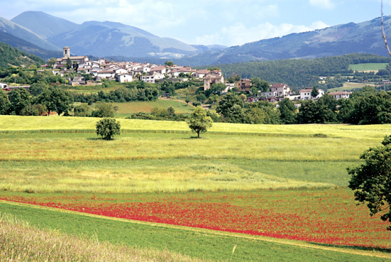 L`occupazione del sito è attestata fin dall`età preistorica attraverso il rinvenimento di manufatti in selce. Ancora in epoca molto antica, il luogo nei pressi della vicina fonte di Frènfano, venne fortificato con un recinto ogivale (lato m. 120, orientamento nord-est), riconoscibile nelle macerie (blocchi grezzi) di poco emergenti dal terreno. Al centro si nota un gruppetto di piccoli blocchi calcarei di mole rilevante; è probabilmente ciò che rimane di una torre. Inoltre, quasi di fronte a questo, sul lato opposto della strada (in corrispondenza dell`incrocio con l`antico tracciato per Avendita), per un`estensione di due-tre ettari di terreno, si estende un`area ricca di frammenti fittili.