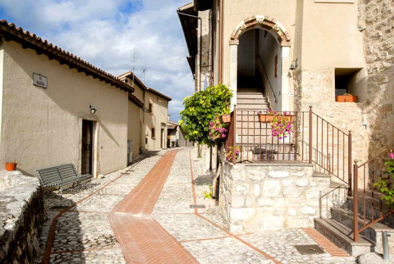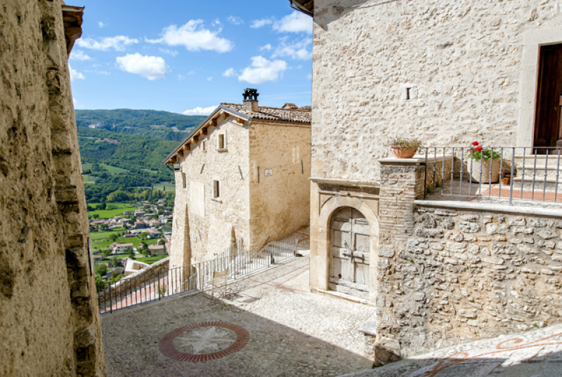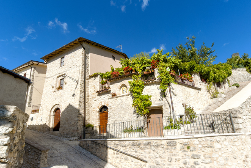 Di notevole interesse è l`impianto urbanistico, caratterizzato da un percorso stradale continuo che si svolge da un estremo all`altro secondo tratti pianeggianti e perfettamente paralleli, raccordati da brevi rampe inclinate. Gli edifici, con tipologia a schiera in genere a tre livelli, sono serviti da accessi sia dal tratto inferiore (prevalentemente a tale quota si hanno depositi e cantine o stalle, che dal tratto superiore della strada dal quale si accede all`abitazione, secondo la tipica distribuzione delle case di pendio. Nelle mura sono tuttora riconoscibili almeno due porte, entrambe poste quasi a metà dello sviluppo del castello nel senso della massima pendenza, in corrispondenza, è da presumere, dell`antica via di mezza costa. Di particolare interesse è quella meridionale, che si accorpa con la possente struttura edilizia della Chiesa di Sant`Andrea.