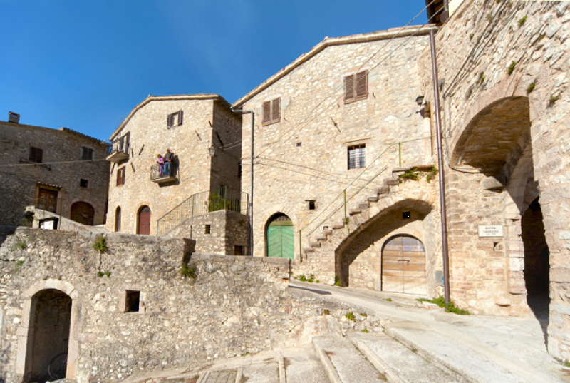 Frazione del comune di Sant’Anatolia di Narco, sorge alla confluenza di percorsi montani che collegavano Scheggino e Sant’Anatolia di Narco con Monteleone di Spoleto. Dalla tipica forma di castello di pendio, il borgo è oggi composto da due nuclei: il primo, conserva ancora una parte delle mura di cinta, una delle porte di accesso ed altri elementi tipicamente medievali, come archi, sottopassi e portali in pietra. L‘altro nucleo, cresciuto fuori le mura attorno alla Chiesa di Santa Maria, è costituito da edifici prevalentemente destinati ad uso agricolo.