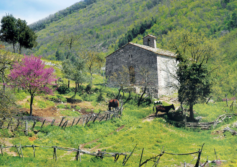 Nel borgo si trova la chiesa di San Michele Arcangelo del XVI secolo rimaneggiata poi nell’Ottocento. All’interno vi è una tela del 1644 che ritrae San Vito incoronato dagli angeli, ed inoltre è possibile ammirare gli affreschi della Madonne con Bambino (anno 1525) e della Crocifissione e Santi del 1603. Poco fuori dal paese, a monte della statale Valnerina, è localizzata la chiesetta romanica di San Vito. Presenta due vani ricavati nel cinquecento ed affreschi come la Crocifissione del 1603 e, entro le arcate, Santi e martiri della metà del XVI secolo attribuiti ad un pittore ispirato dall’opera di Vincenzo Tamagni.