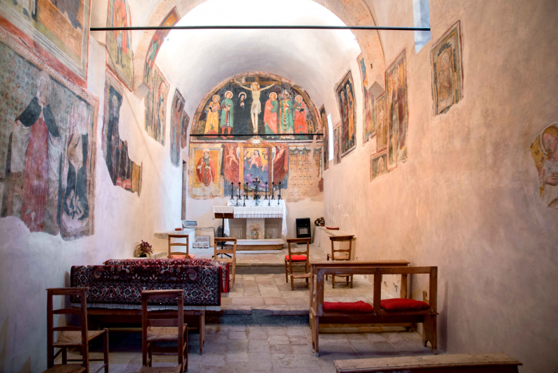 La Chiesa di San Valentino, dedicata al patrono di Terni, risale all’inizio del duecento e all’interno risulta completamente affrescata con opere realizzate tra il XIV ed il XVI secolo ancora in ottimo stato di conservazione. Tra gli altri si trovano opere del Maestro di Eggi (anonimo del XV secolo), Madonna e Sant’Antonio Abate, Madonna del Latte, Madonne in trono, Madonna della Misericordia, San Bernardino, San Ponziano, Santa lucia.