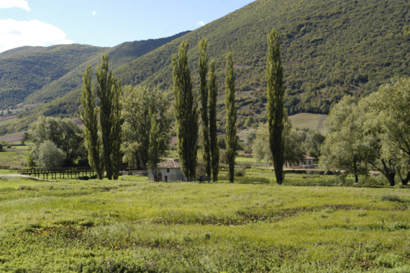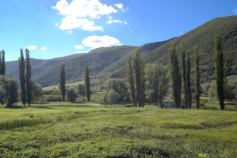 La distesa verde splendente che si stende ai piedi delle mura della città di Norcia è conosciuta con il nome di Marcite.