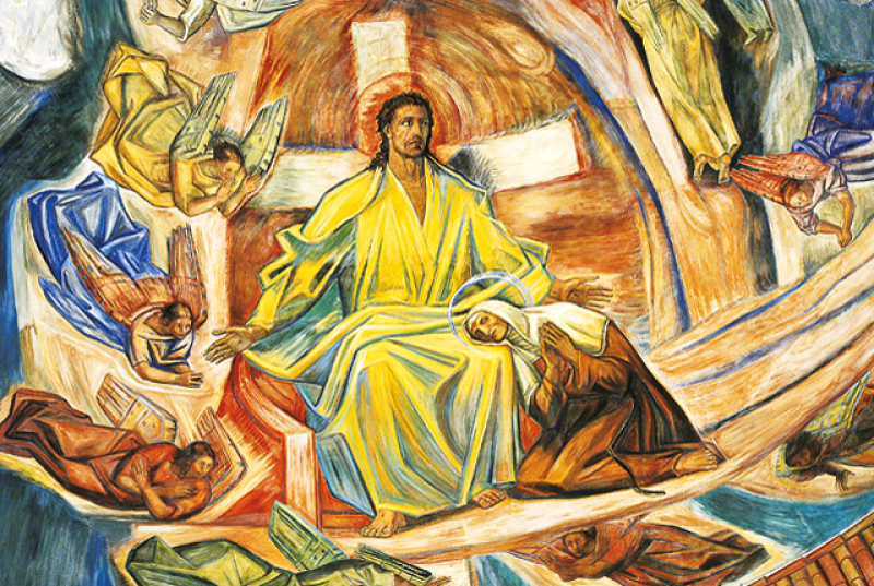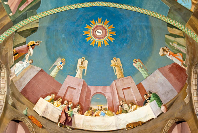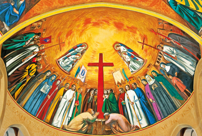 La cupola centrale della Basilica, dipinta dal Montanarini (1956) rappresenta i Santi dell’Ordine, fra cui Rita e Agostino. Il corpo della Santa è posto in un’urna d’argento all’interno di un tempietto di rame, custodito da quattro angeli che rappresentano le virtù cardinali. A coronare l’urna la scritta latina: “ Hai preceduto i suoi passi con le benedizioni della tua dolcezza, Signore, hai posto sul suo capo una corona di pietra preziosa. Alleluia”.