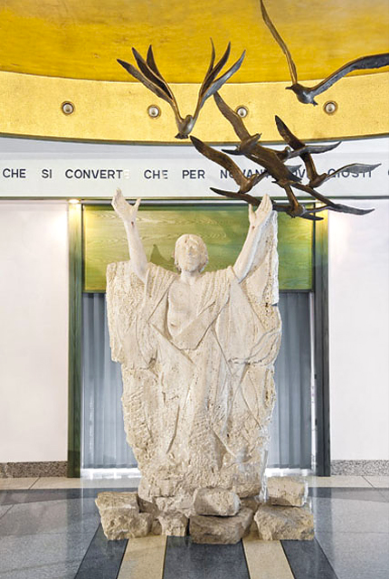 La struttura della Basilica di Santa Rita accoglie al suo interno anche la Penitenzieria e la Basilica Inferiore. Nella Penitenzieria è possibile ammirare il gruppo scultoreo in travertino del Figliol Prodigo, ad opera del Marrocco; sempre dalla sua mano la “Fontana della Vita” (1986) che si trova a lato della Basilica Inferiore. Quest’ultima, dotata di grande significato, ricorda il ventre di una partoriente, con una fessura a forma di croce da cui sgorga acqua che richiama il simbolismo evangelico dell’acqua della vita. All’interno della Penitenzieria, del medesimo autore è il Cristo con gabbiani in cui il Redentore, rappresentato con una ferita sulla fronte nata dalla corona di spine, lascia dipartire da esso un volo di gabbiani «a simboleggiare la ritrovata libertà dello spirito».