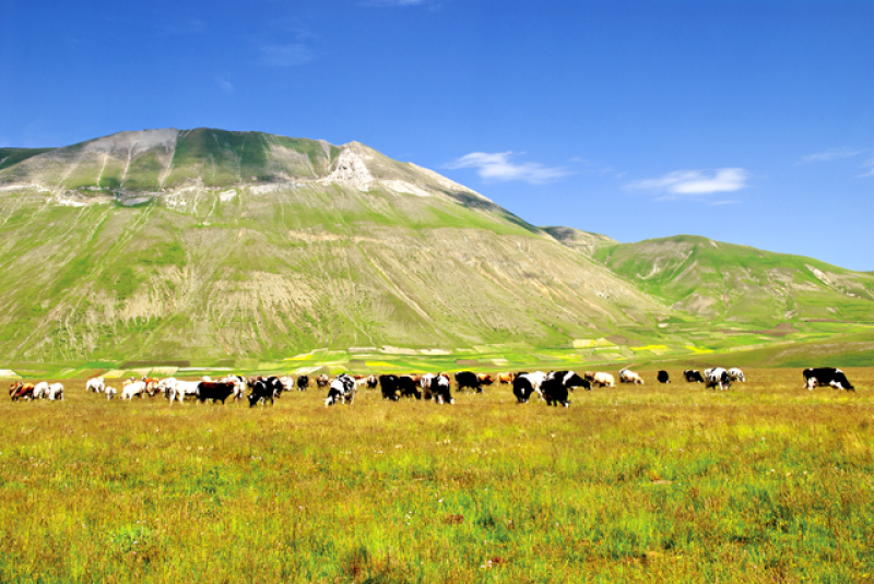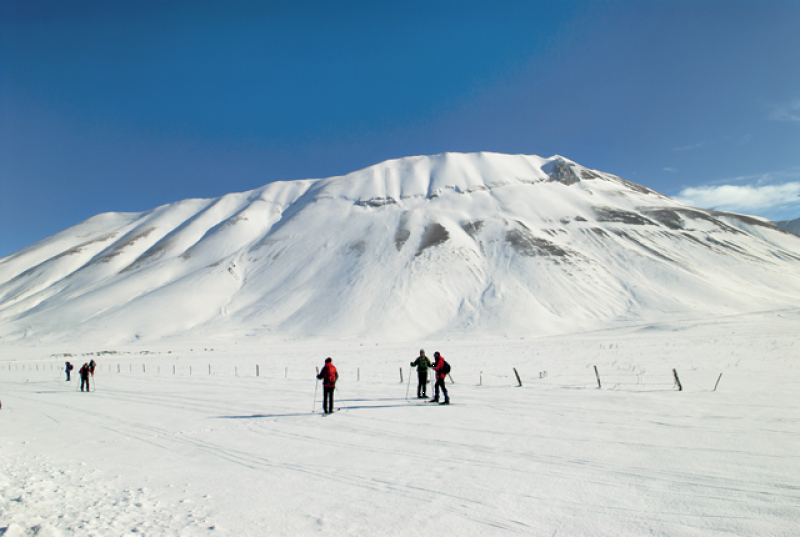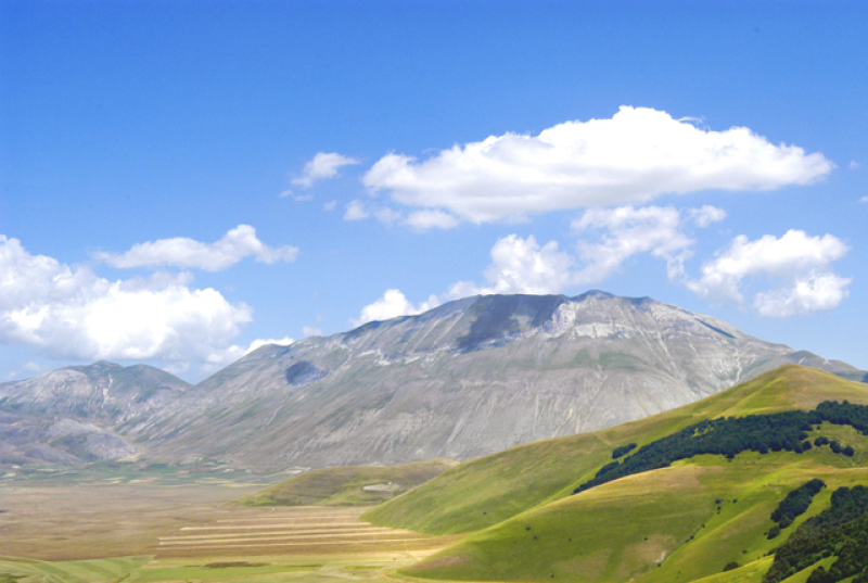 Una pecularietà di Monte Vettore è sicuramente il suo aspetto cosi diverso tra il versante umbro, appartenente al Comune di Norcia e il versante marchigiano. Ad occidente il Monte Vettore si innalza dall`Altopiano di Castelluccio per quasi 1000 metri, completamente spoglio di vegetazione, e anche se imponente la parete ha una sua dolcezza, interrotta solo a quota 2000 - 2100 m. da una frattura orizzontale (una faglia di 4 km), la "Strada delle Fate", e il grande Scoglio dell`Aquila.