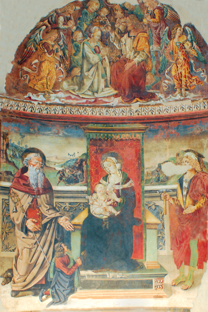 Tra gli affreschi della Chiesa di Sant`Agostino, si segnalano: sulla parete destra, Madonna col Bambino del sec. XIV, appartenente alla cultura pittorica della valle spoletina; Madonna coi SS. Antonio e Claudio, di Giovanni Battista da Norcia (1497); Madonna con i SS. Caterina Antonio e Amico di Gaspare Angelucci (1541); Crocifissione di S. Pietro, tela molto danneggiata attribuita a Vincenzo Manenti.