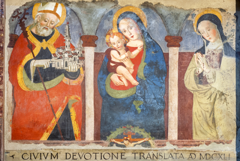 La Cattedrale di Santa Maria Argentea si trova in posizione lievemente defilata rispetto agli altri importanti edifici che adornano la piazza maggiore di Norcia.