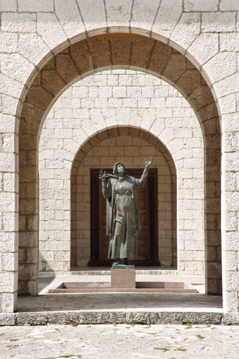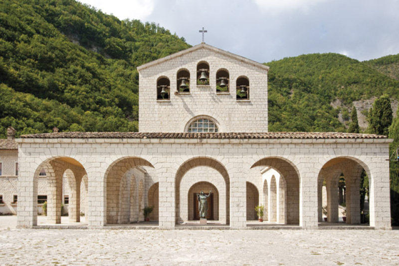 Il Santuario di Roccaporena, aperto al culto nel 1948, venne realizzato dall’architetto torinese Oreste Della Piana, che utilizzò per la costruzione pietra locale.