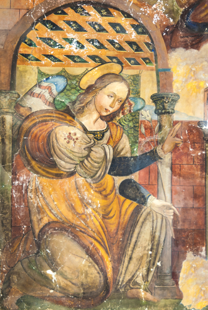 Alla destra della nicchia è raffigurata l’Annunciazione, datata 1533. A sinistra, l’arcangelo Gabriele in ginocchio reca l’annuncio. In alto, sopra la finestra, il Padre col globo in mano e, alla sua destra, lo Spirito Santo in forma di colomba dal quale si diparte un lungo raggio igneo che colpisce al cuore la Vergine. Nel terzo arco, Maria seduta allo scriptorium, in atto di profondo raccoglimento.