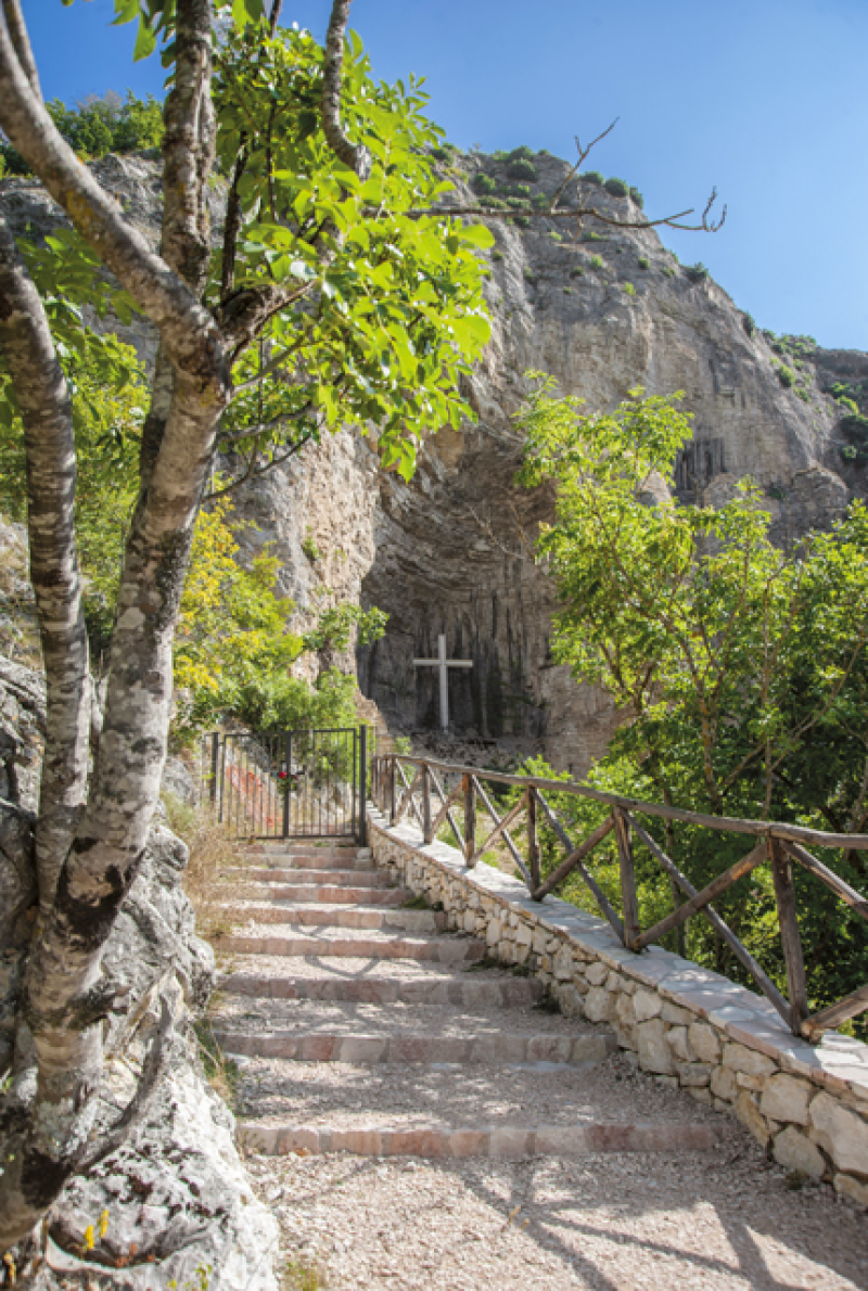 Il pavimento della grotta, a causa delle stratificazioni della roccia, degrada verso l’esterno formando una sorta di anfiteatro naturale. Nella parte più interna, si stende una terrazza a due livelli sovrapposti sul fondo della quale, le lunghe tracce di fuliggine che imbrattano le pareti dell’antro indicano il luogo in cui, secondo la tradizione popolare, Rita avrebbe sostato in preghiera.