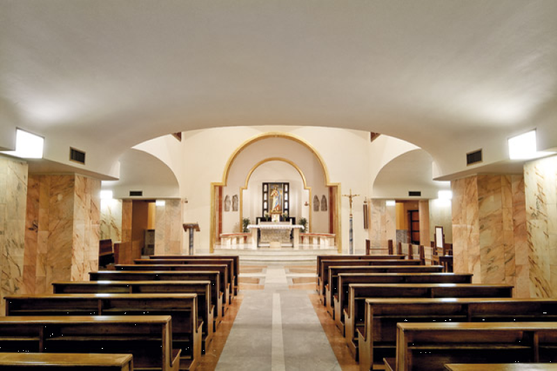 La Basilica Inferiore o del Sacro Cuore, sottostante la Basilica di Santa Rita, come essa a croce greca absidata.
