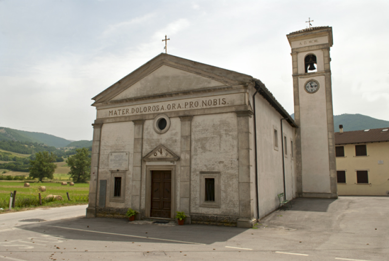 La Chiesa dell`Addolorata sorge al lato dell`incrocio a T della strada proveniente da Leonessa su quella che si dirige da un lato a Monteleone di Spoleto e dall`altro verso la Chiesa di Santa Maria De Equo.