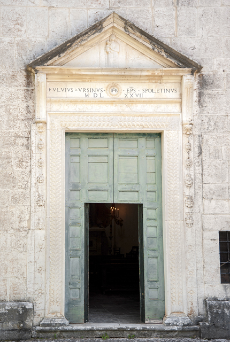 La Chiesa di San Nicola, nata da un semplice sacello, fu concessa nel 1598 alla Confraternita del Sacramento. La facciata a capanna, conclusa da una cornice modanata, è in cortina bianca. Il portale rinascimentale culmina a timpano ed è decorato nei pilastri e negli stipiti da motivi classicheggianti; nella lunetta Madonna con Bambino in bassorilievo (lavoro di lapicidi lombardi datato 1577). Sopra la finestra orbicolare tre stemmi (Gregorio XIII, Fulvio Orsini vescovo di Spoleto, Comunità di Norcia) eseguiti dagli stessi scalpellini.