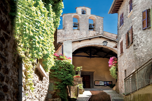 L’assetto attuale della Chiesa di S. Nicola, a tre navate, risale al 1572. Nel 1663, a offrire un riparo dalle inclemenze delle stagioni, venne aggiunto lo spazioso atrio. Nella navata sinistra, un importante affresco della Sacra Famiglia di Piermattia Gigli da Spoleto (1584), distaccato dall’antico palazzo comunale. Segue l’altare di S. Lucia, fatto costruire da Giovan Simone Ottaviani (sec. XVII), con la tela del perugino Pierino Cesarei raffigurante S. Antonio da Padova e S. Lucia, qui curiosamente vestita alla turchesca.
