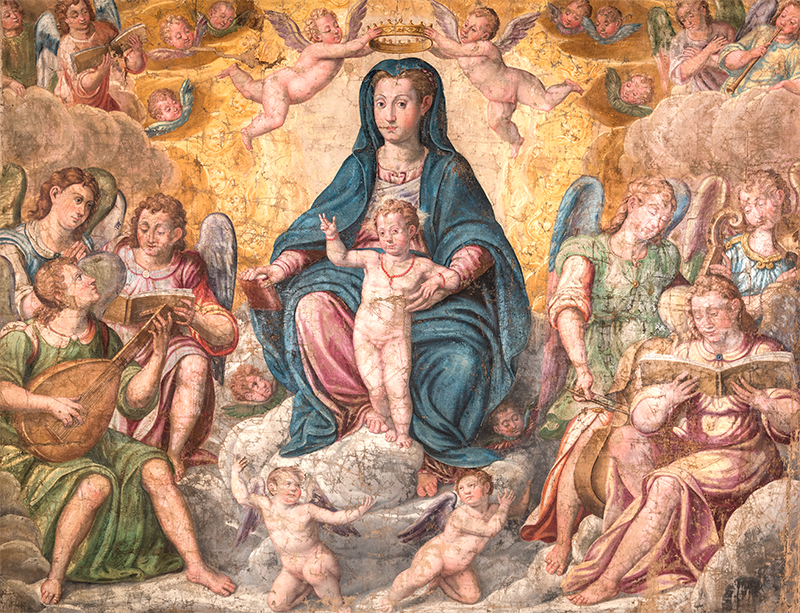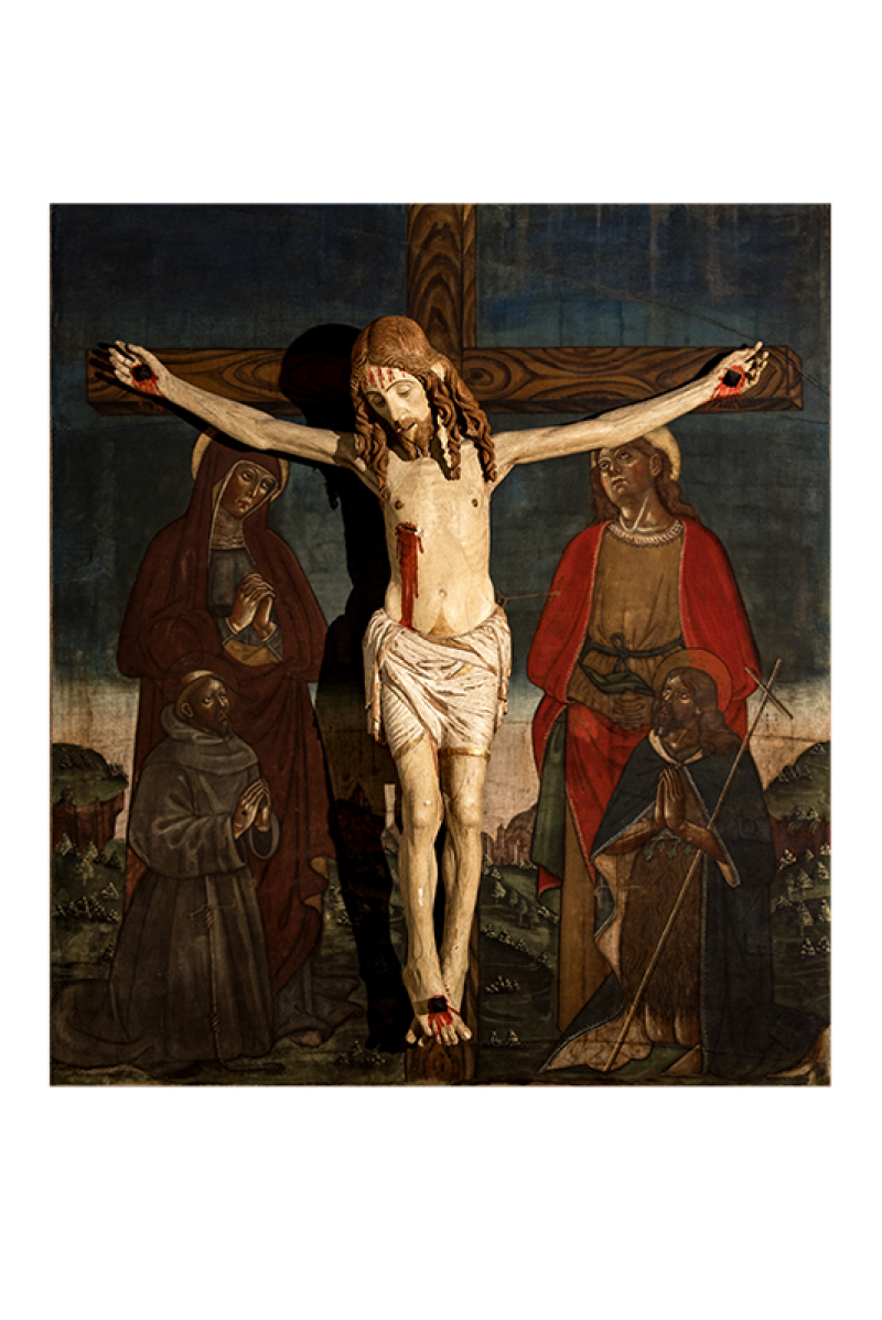 L’ultima sezione del Museo è dedicata alla pinacoteca che ospita una vasta gamma di opere di notevole importanza, provenienti da Cascia e dal territorio circostante. Di maestosa bellezza, tra le altre, la tela raffigurante la Madonna con il Bambino in gloria fra angeli musicanti. L’opera, del 1590, attribuita a Virgilio Nucci, su commissione di Serafino Frenfanelli, era conservata nel convento di Sant’Agostino. Di rilevanza è la tela con I Santi Giuseppe, Vincenzo Ferrer e Antonio Abate, proveniente dalla Chiesa di San Biagio, nel piccolo borgo di Santa Trinita, a pochi chilometri da Cascia. Il dipinto appartiene all’attività tarda di Domenico Corvi (1721-1803), pittore di grande importanza nel secondo Settecento romano. È possibile, inoltre, ammirare il Cristo crocifisso tra la Vergine, San Giovanni e Santo Stefano. La pala d’altare del XVII secolo è stata rinvenuta nella Chiesa di Colle Santo Stefano, piccolo borgo a pochi chilometri da Cascia, forse attribuibile a Lazzaro Baldi, nativo di Pistoia e allievo di Pietro da Cortona, che insieme a Bernini e Borromini fu fra i massimi protagonisti del barocco romano.