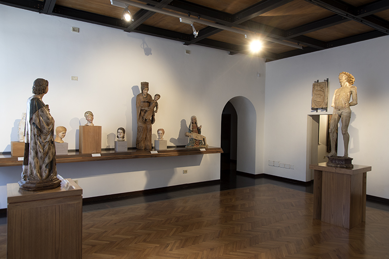 Un’ulteriore sezione del Museo è dedicata alle statue lignee che vanno dal XI al XVI secolo d.C. di eccezionale interesse culturale, attestanti l’importanza del patrimonio dell’arte religiosa nelle terre umbre in epoca medievale. Ne è un esempio la Madonna con il Bambino, realizzata da uno scultore umbro della metà del XIII secolo e rinvenuta nella chiesa di San Fortunato nel borgo di Poggioprimocaso, a pochi chilometri da Cascia. Tra le altre, di notevole rilevanza, la statua di San Bernardino da Siena, rinvenuta nella Chiesa di San Francesco di Cascia e la statua di San Sebastiano proveniente dalla Chiesa di Sant’Agostino. Da poco trasferito dalla Chiesa di Sant’Antonio Abate, il gruppo scultoreo che raffigura l’Arcangelo Raffaele con Tobiolo, realizzato probabilmente da Domenico Indivini nel XV secolo in legno dipinto e dorato.