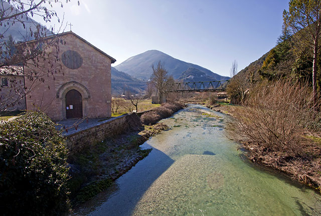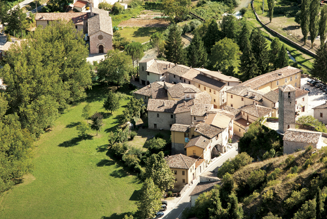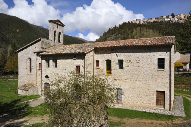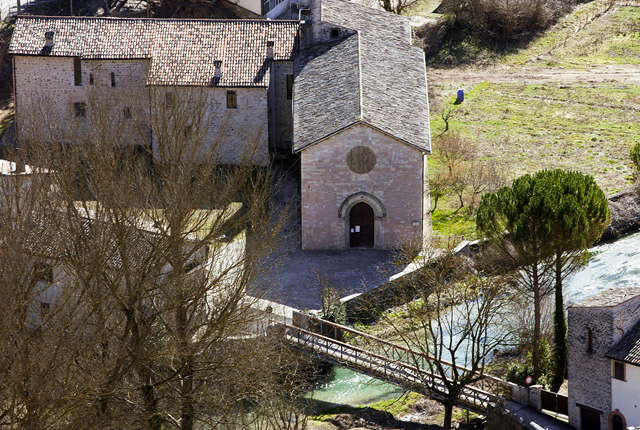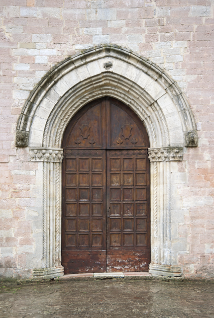 The gabled façade of the church of San Lorenzo in Borgo Cerreto, in red quoin stones, presents no ornaments other than those finely sculpted on the pointed-arch portal, with fascias of columns in the embrasure and archivolts in the arch, and the small rose window, the effect of which however has been lost with the restoration work.