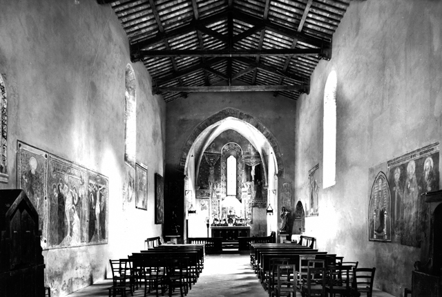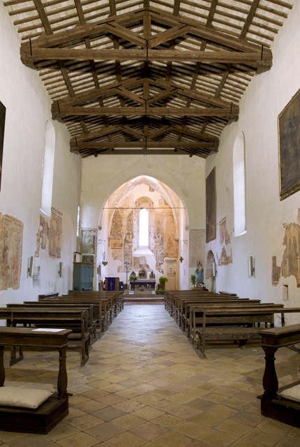In the counter-façade, to the right, Madonna of Mercy, from the early 15th century. The right wall contains remains of 14th century votive frescoes, of simple design. In the counter-façade, on the left, Madonna of Loreto, dated 1507; four Saints, from the late 15th century. In the left wall, Saint Dominic, from the early 14th century; Father Eternal and Annunciation.