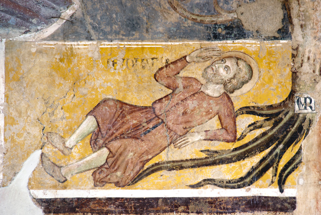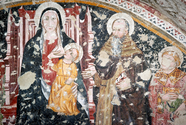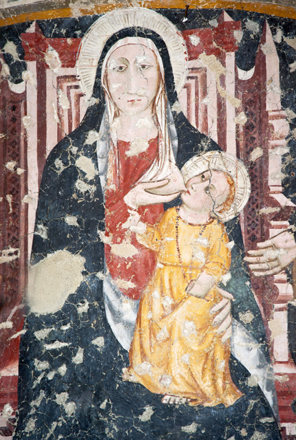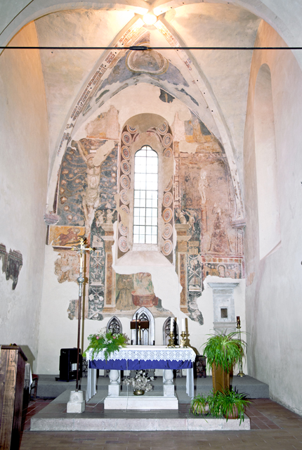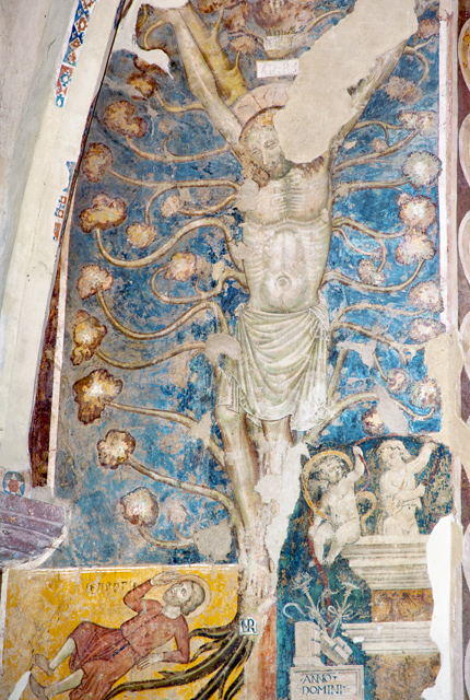 In the bottom wall of the choir other frescoes can be chronologically distinguished into three groups.
