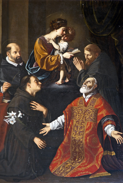 The interior is typical of the Churches of the minor mendicant orders: it is composed of a spacious rectangular truss-covered nave, and by a choir with rectilinear end, covered by a groin vault with corbels supporting the ribs. Of the altar pieces, remains a Madonna with Saints Anthony of Padua, Fillippo Neri, Francis de Sales and Francis of Assisi.