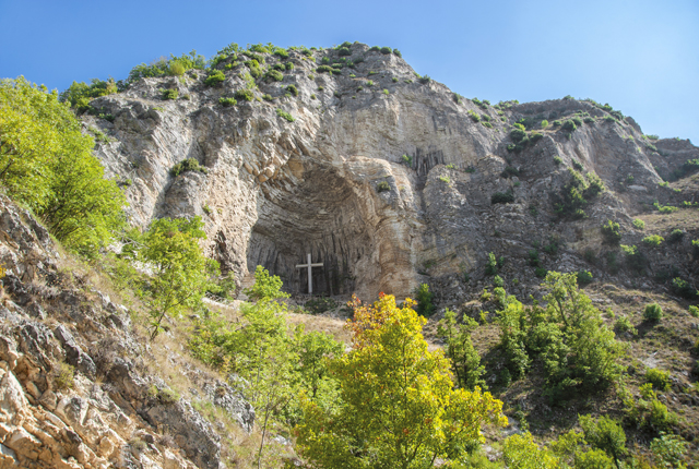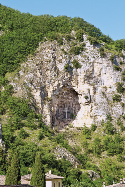 Due to the rock stratifications, the grotto floor is wearing away towards the outside, thus forming a sort of natural amphitheatre, above Roccaporena. Inside, there is a two-layered ledge, on which it is said Rita prayed.