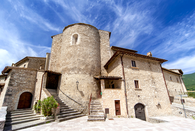 The parish Church of San Giovanni Battista, in the town of Vallo di Nera, was built at the top of the castle between the 13th and 14th century and partially rebuilt in the 16th century. The date of 1575, carved into the corner of the façade, refers to the portal and the rose window. The false front presents a belfry (greater bell from 1745); on the right side, two single-mullioned windows belong to the primitive construction.