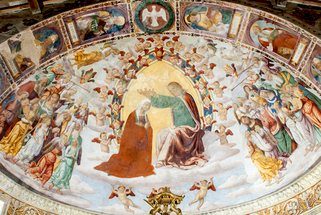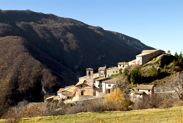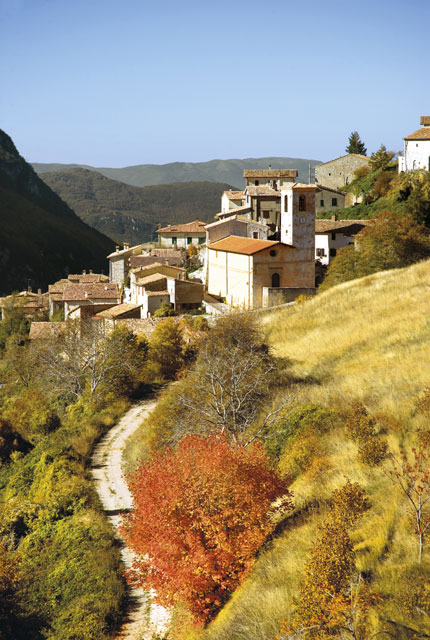 This evocative, late mediaeval castle stands on a very steep slope on the road to Monteleone di Spoleto. The town layout has a series of parallel roads running towards the church of San Michele Arcangelo.
