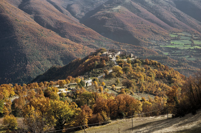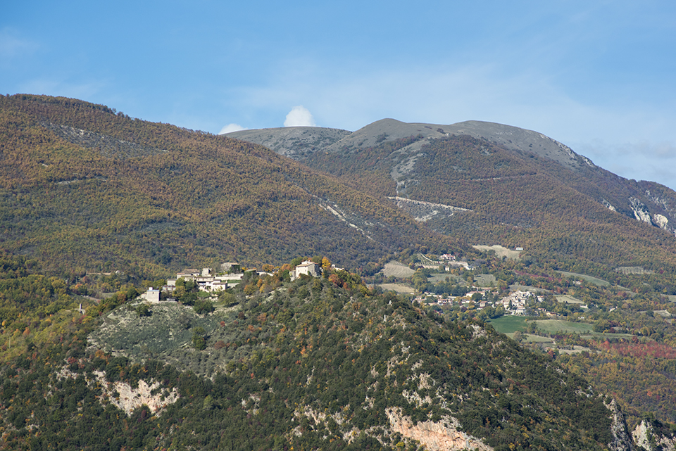 Paterno is a village in the municipality of Vallo di Nera at an altitude of 605 m. a.s.l. with 23 inhabitants in 1971. Paterno can be considered part of a territorial “system” that was set up between the 11th and 14th centuries, which consisted of the castle, the parish church (San Giusto), the village (Piedipaterno) and a monastic settlement (L`Eremita). The latter is the oldest part of the entire system and was the decisive impulse for its construction and organisation.